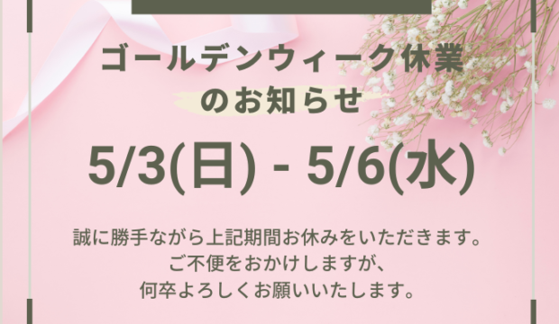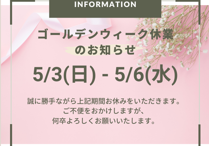 【休業期間】2026年5月3日(日)~5月6日(水)